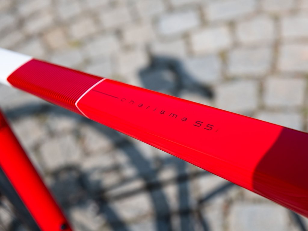 Našla své místo na trhu v kategorii, které se říká Endurance. Takto koncipované a designované karbonové rámy mají vyšší hlavovou trubku a kratší horní rámovou trubku, delší vidlici i zadní stavbu, což poskytuje vzpřímenější a kratší posed a větší tlumení vibrací. To zlepšuje pohodlí a snižuje únavu během dlouhých jízd. Samozřejmostí je užití širších plášťů, na modelu CHARISMA 55i je to obutí od značky VITTORIA, konkrétně model Zaffiro Pro v šířce 30 mm (maximální možná šířka pláště je 35 mm). Silničářská a zcela kompletní sada Shimano 105 v elektronickém provedení Di2 s hydraulickými brzdami ve verzi 2×12 převodů se postará o ladné řazení. K lehkosti a rychlosti jízdy přispívají i zapletená kola MAVIC Ksyrium S Disc UST připravená i na bezdušové použití. Standardem jsou kompletní tahy uvnitř rámu i vidlice a pevné osy vpředu i vzadu. Kokpit dodala značka FSA včetně hlavového složení, sedlo pak Prologo modelem Dimension Space.