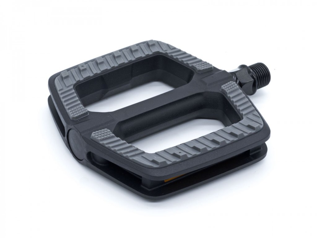 Velikost platformy a pryžové výstupky zaručují perfektní usazení boty na pedálu.
