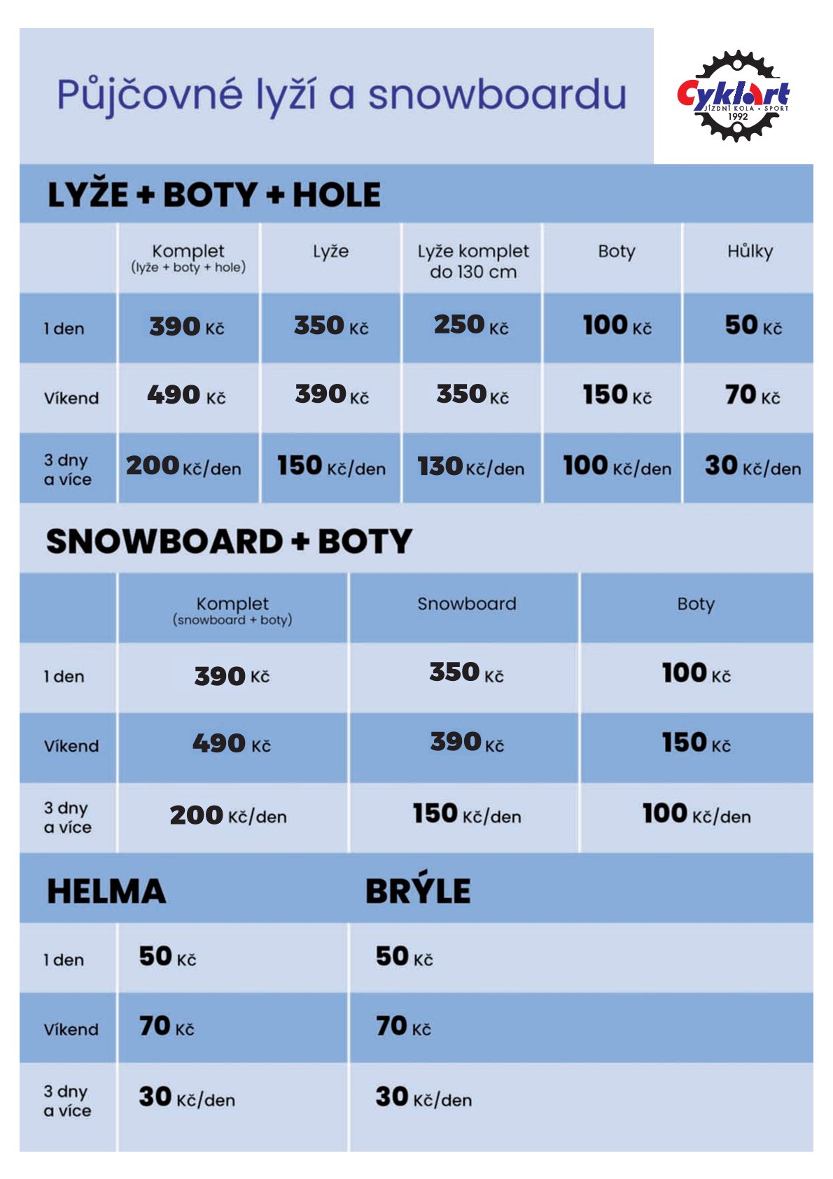 cyklo, ski servis a půjčovna - níže ceníky